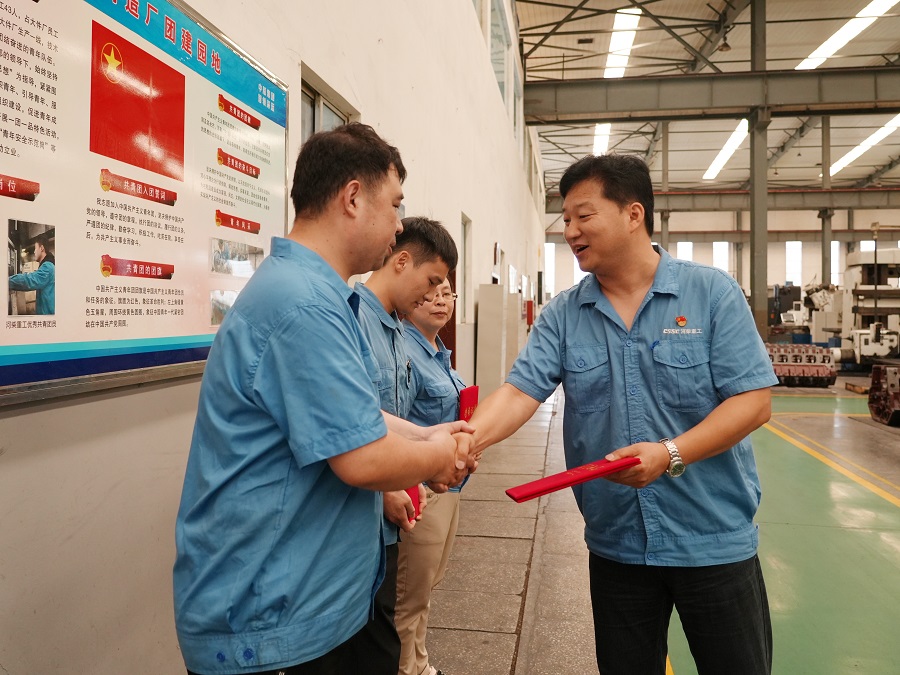 7月1日,在慶祝中國共產(chǎn)黨成立104周年之際,中船河柴黨委副書記、總經(jīng)理王正祥,黨委委員、紀(jì)委書記劉文凱化身“榮譽(yù)使者”,走進(jìn)車間廠房、辦公室等,把“先進(jìn)基層黨組織”“優(yōu)秀共產(chǎn)黨員”和“優(yōu)秀黨務(wù)工作者”的證書送到受表彰者手中,以別開生面的形式讓這場表彰既有溫度,又有力量。